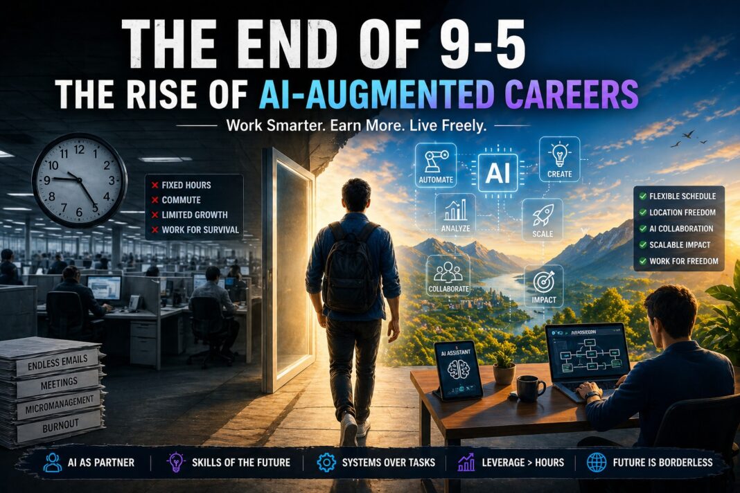 The 9-5 culture is now replacing, not because of remote work or freelancing, but because of something more powerful that is Ai augmentation. We are entering in the phase where value is based on how effectively you are collaborating with Ai. Welcome to the era where 9-5 ends and Ai augmented careers rise.